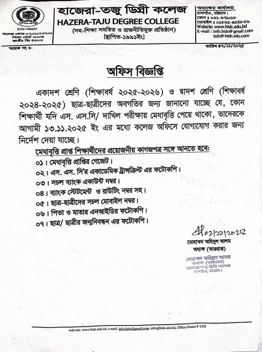 | মেধা বৃত্তি সংক্রান্ত বিজ্ঞপ্তি Active New HSC | 2025-11-04 | Download |