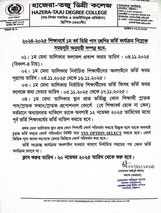 | ২০২৪-২০২৫ শিক্ষাবর্ষের ১ম বর্ষ ডিগ্রি পাস শ্রেণির ভর্তি সংক্রান্ত বিজ্ঞপ্তি Active New Degree | 2025-11-04 | Download |