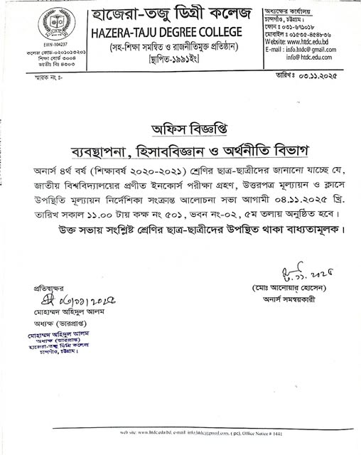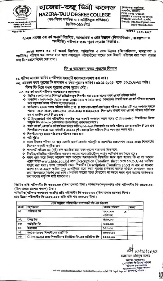 | ২০২৩ সালের অনার্স ৪র্থ বর্ষ পরীক্ষার প্রকাশিত ফলাফলের উত্তরপত্র পুনঃমূল্যায়নের আবেদন প্রসঙ্গে। Active New Honors | 2025-11-17 | Download |