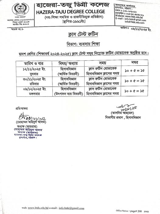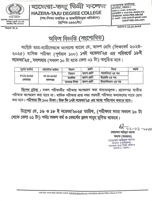 | মাসিক পরীক্ষা সংক্রান্ত বিজ্ঞপ্তি Active New HSC | 2025-10-19 | Download |