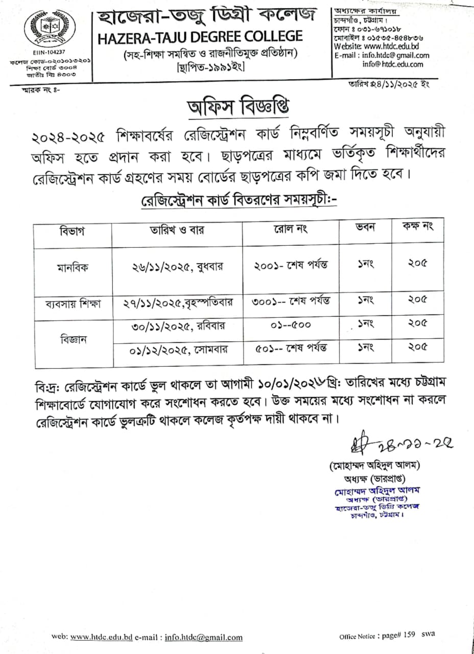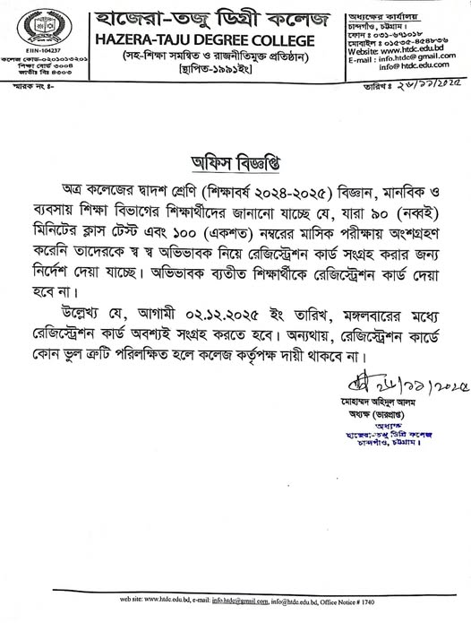 | দ্বাদশ শ্রেণির (শিক্ষাবর্ষ ২০২৪-২০২৫) রেজিস্ট্রেশন কার্ড বিতরণ সংক্রান্ত বিজ্ঞপ্তি। Active New HSC | 2025-11-24 | Download |