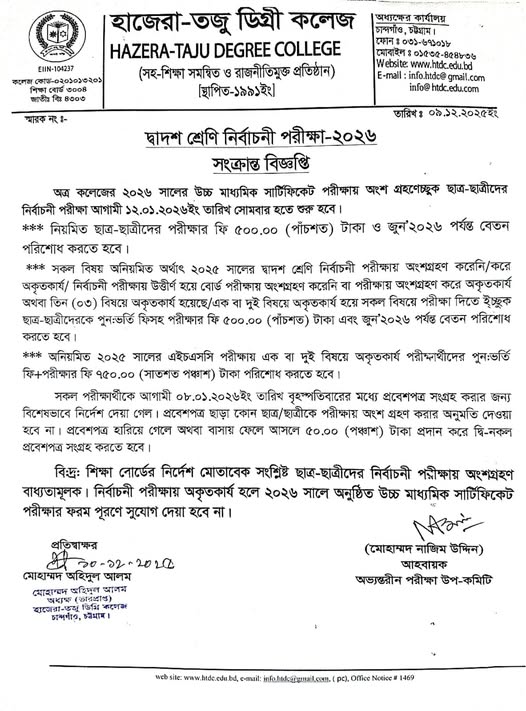 | হাজেরা-তজু ডিগ্রি কলেজে মহান বিজয় দিবস ও বুদ্ধিজীবী দিবস - ২০২৫ উদযাপিত Active New General | 2025-12-16 | Download |