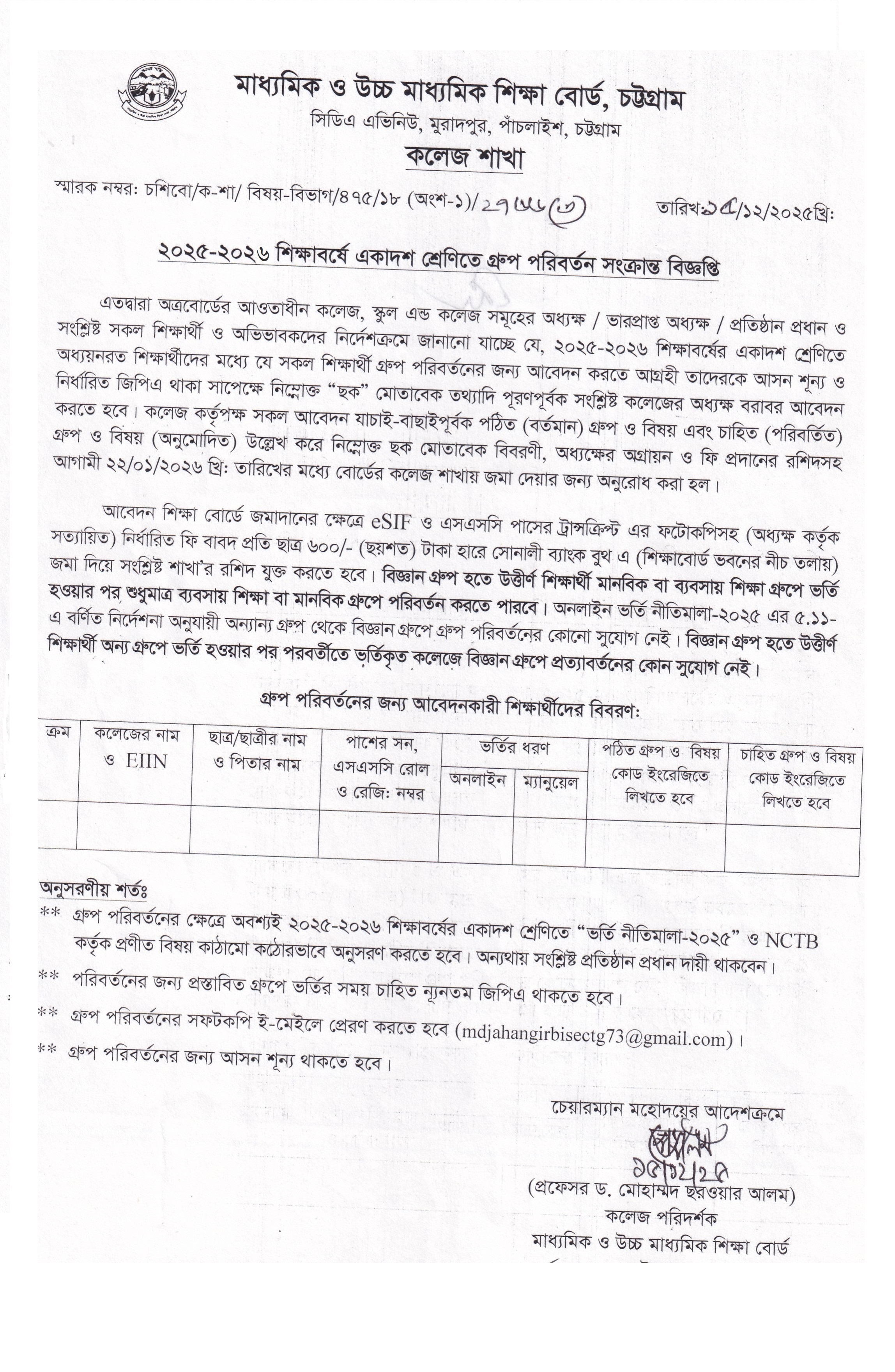 | নোটিশ ২০২৫-২৬ শিক্ষাবর্ষে ভর্তিকৃত শিক্ষার্থীদের একাদশ শ্রেণিতে গ্রুপ পরিবর্তন সংক্রান্ত বিজ্ঞপ্তি Active New HSC | 2025-12-16 | Download |