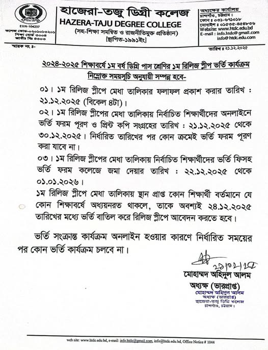 | ২০২৪-২০২৫ শিক্ষাবর্ষে ১ম বর্ষ ডিগ্রি (পাস) শ্রেণির ভর্তি কার্যক্রমে ১ম রিলিজ স্লিপে ভর্তি সংক্রান্ত বিজ্ঞপ্তি। Active New Degree | 2025-12-21 | Download |