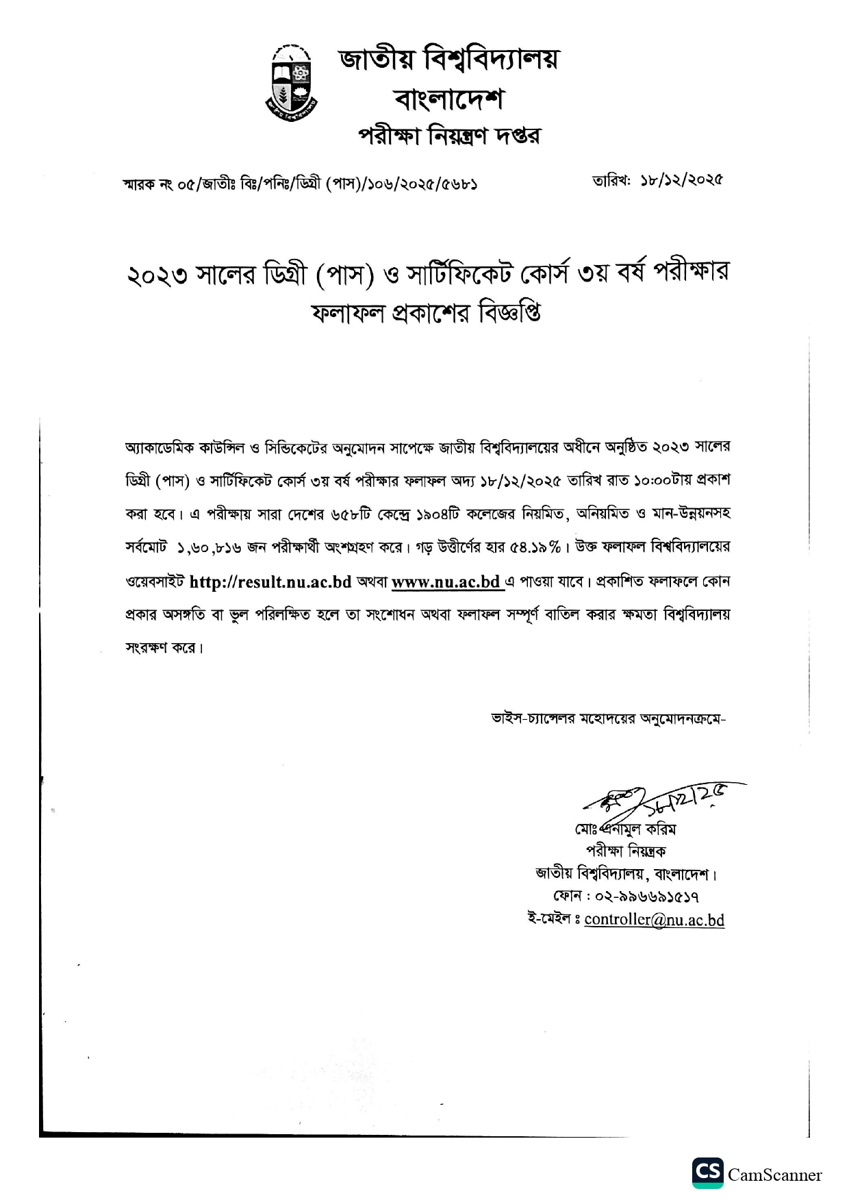 | ২০২৩ সালে ডিগ্রী (পাস) ও সার্টিফিকেট কোর্স ৩য় বর্ষ পরীক্ষার ফলাফল প্রকাশের বিজ্ঞপ্তি Active New Degree | 2025-12-21 | Download |