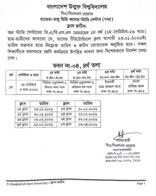 | বাংলাদেশ উন্মুক্ত বিশ্ববিদ্যালয় পরিচালিত এইচএসসি প্রোগ্রামের ক্লাস নির্ধারিত রুটিন মোতাবেক অনুষ্ঠিত হবে। Active New HSC | 2025-09-01 | Download |
